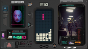 Within this Neuro-simulation, the user has access to MUSE-V2 to infiltrate complex systems by solving Tetromino-type puzzles. The hacking of each target device or system is represented by a capture image of the target that must be decoded.